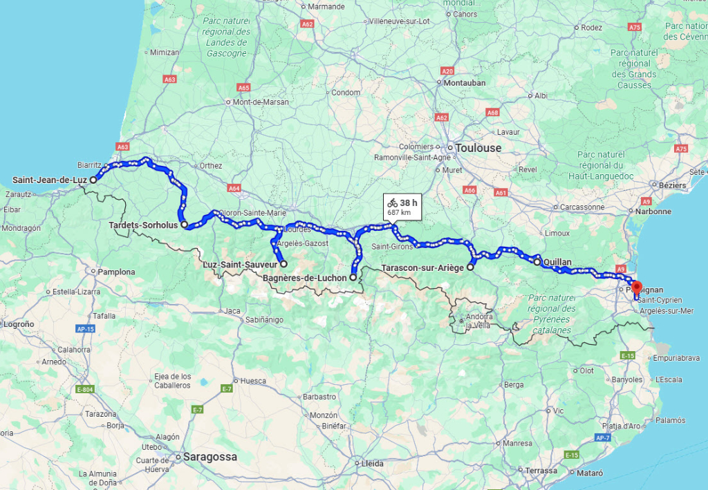 In 6 abwechslungsreichen Etappen fahren wir von St. Jean de Luz am Atlantik nach Saint Cyprien Plage am Mittelmeer.